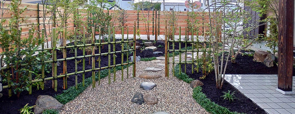 垣根、飛石、植木、雑木によって庭全体の統一感ができました。