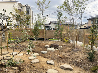 また雑木によって軽快で自然感のある図面通りの庭が完成しました。