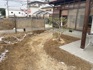 既存の植木を整理して茶事が行える、モミジを主体とし雑木を多用したすっきりとしたお庭になるようにリフォームを行います。